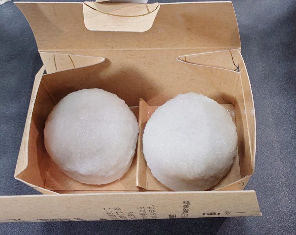 箱入りで2個セット。個包装タイプもありましたが、柔らかくつぶれやすそうだったので箱入りを選びました。