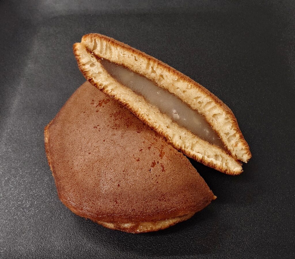 直径約3.5㎝の小ぶりなどら焼きで、褐色の生地は手に取ると驚くほどしっとりしています。