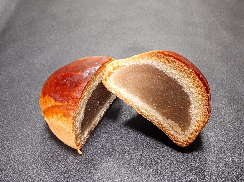 まわりの生地は、よくあるタイプの甘めで小麦の風味が感じられる饅頭生地。
