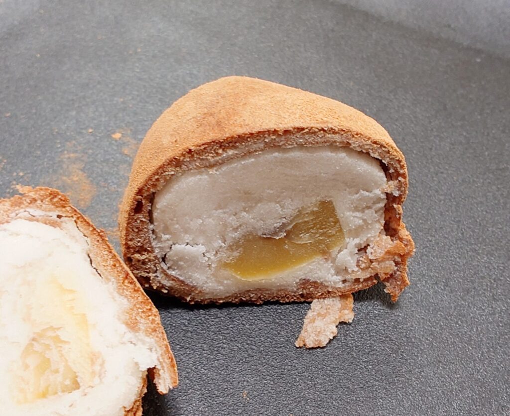 噛んでいくと、甘さ控えめの白餡のやさしい甘い香りが重なり、良いバランスになってきます。